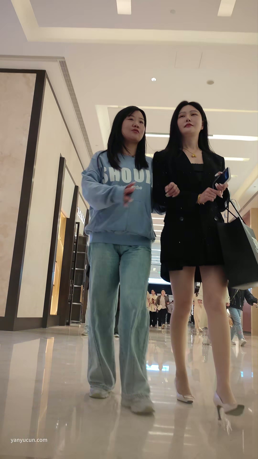 XM319黑色连衣裙肉色丝袜气质美女和闺蜜逛街,白色内内 ...