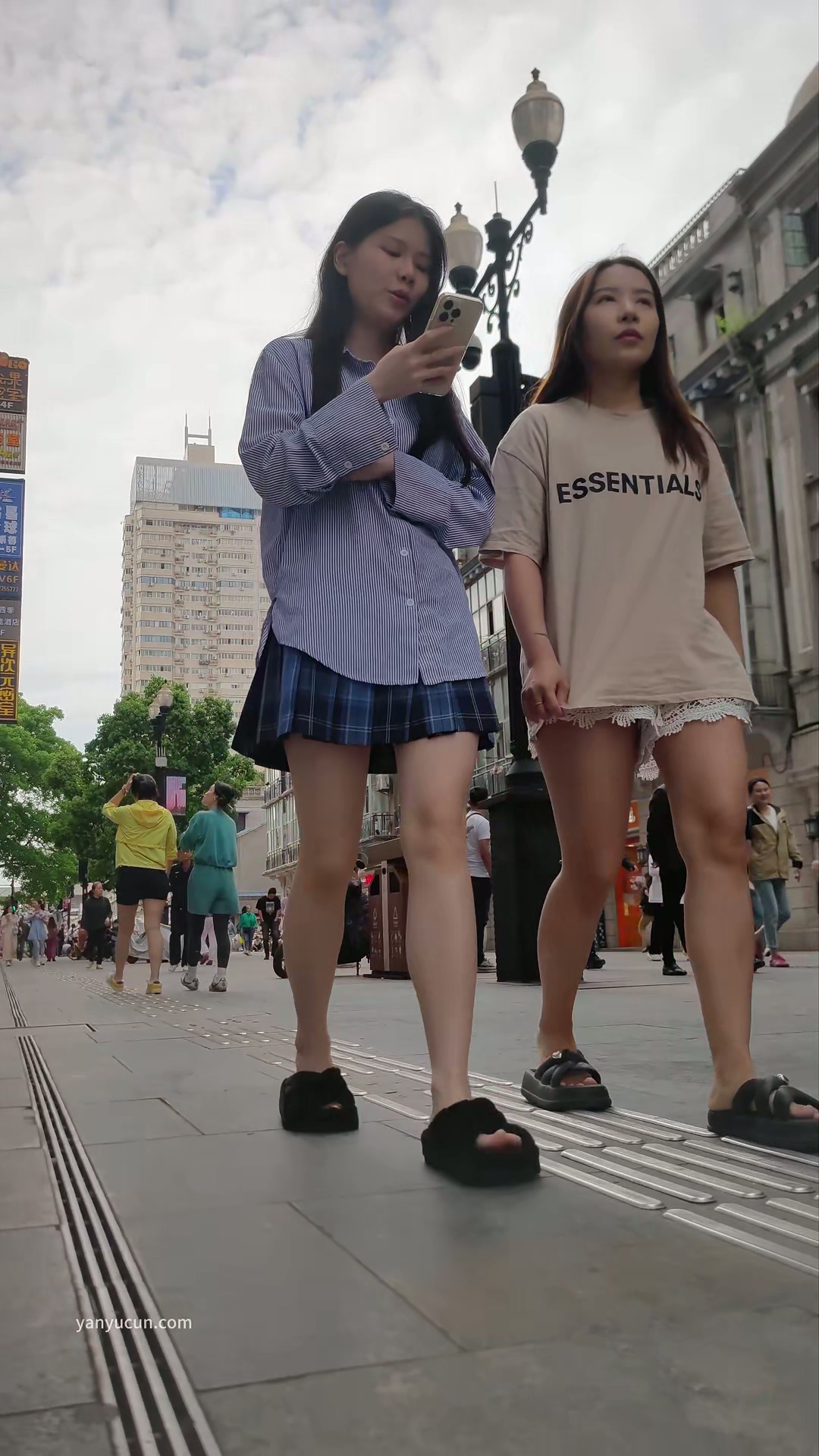 XM345JK小姐姐和家人一起出门逛街,姐妹两个双双被抄底 ...