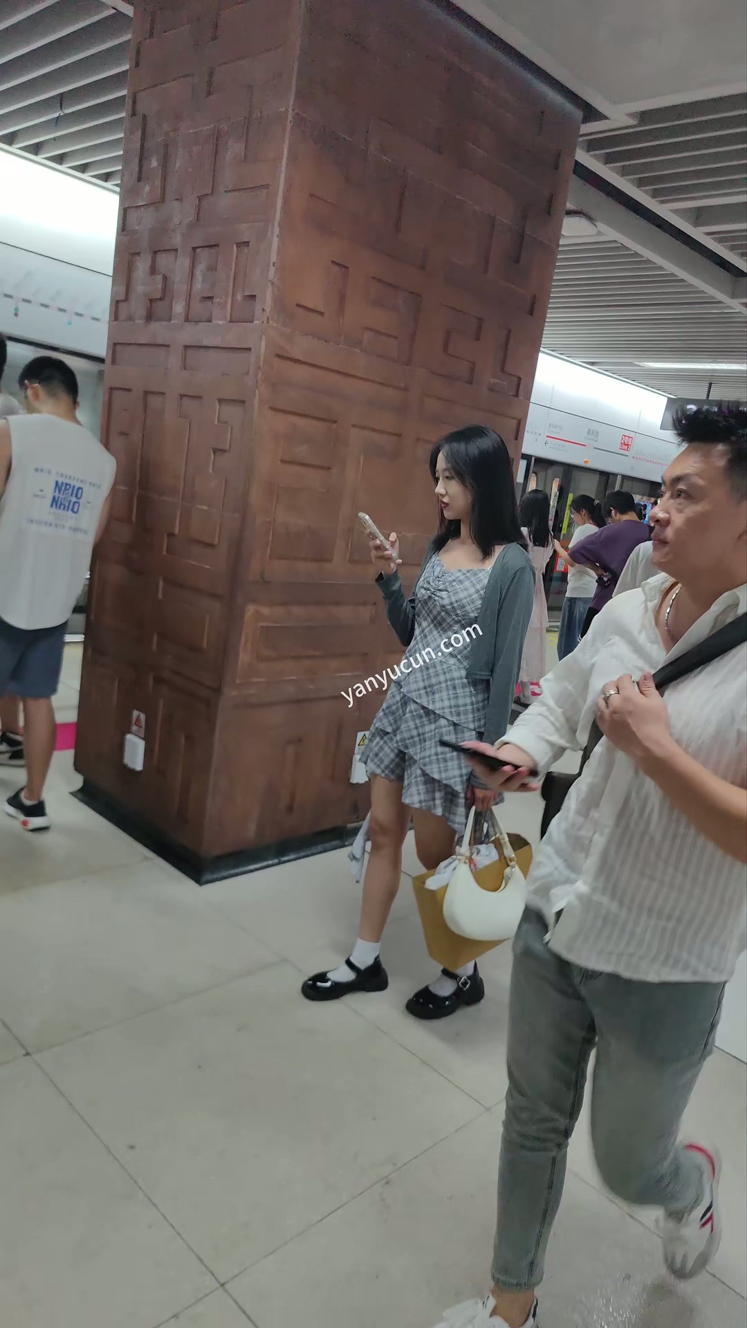 XM356灰色连衣裙小姐姐坐地铁,白色内内 ...