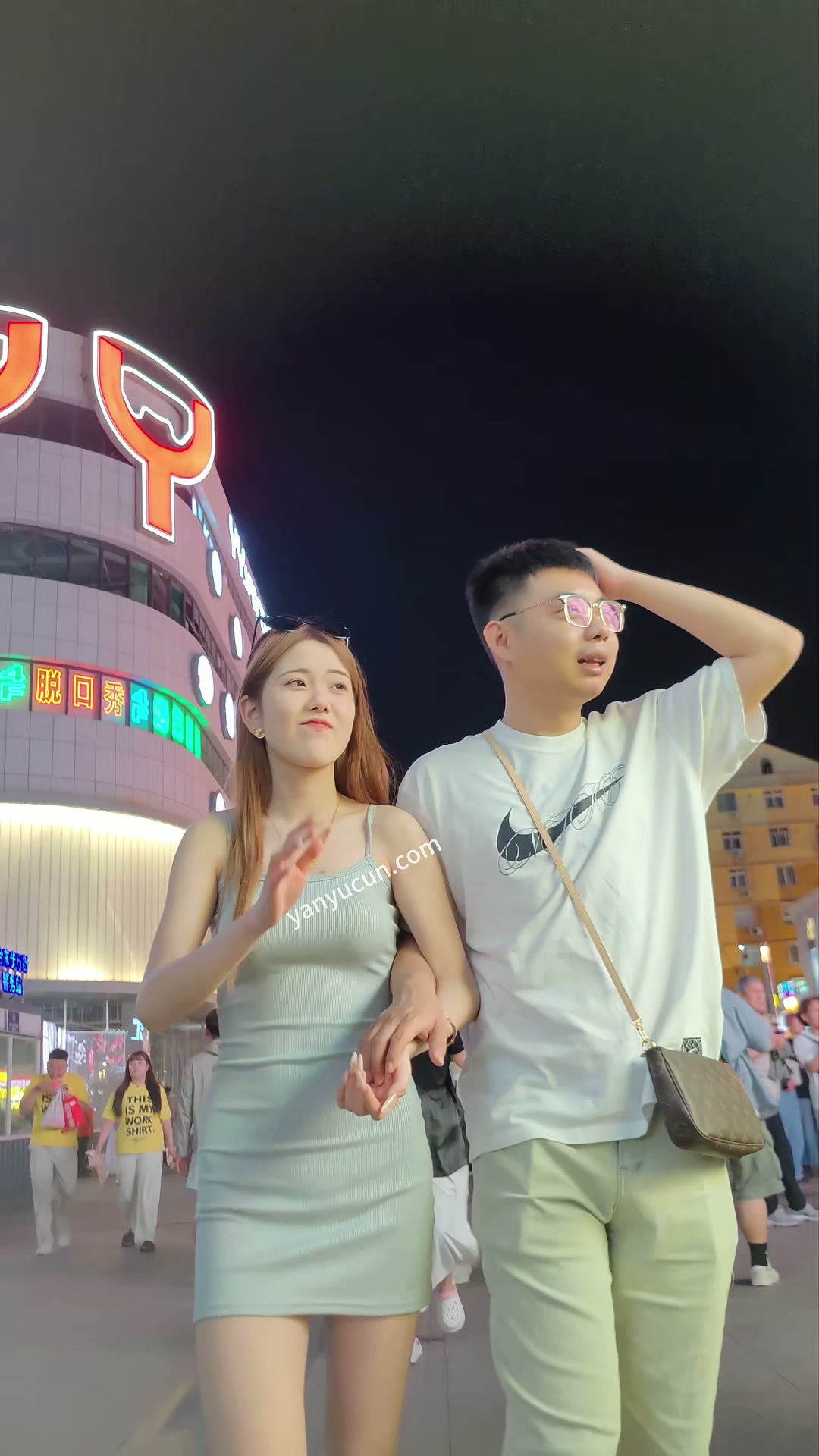 XM373灰色包臀裙美女和男朋友逛夜市,白色内内 ...