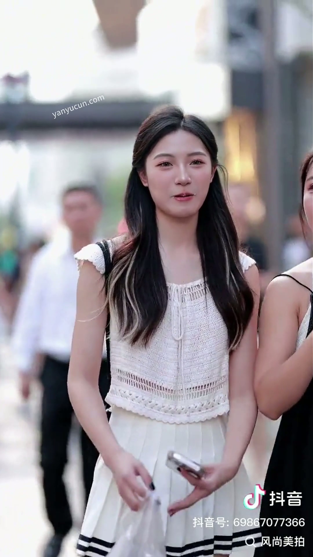 XM476白色短裙小姐姐和闺蜜逛街被街拍,白色内内 ...
