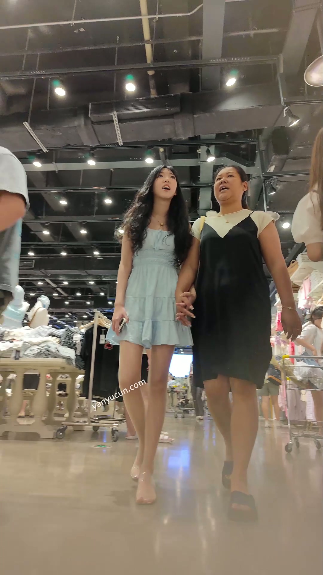 XM478蓝色连衣裙肉色丝袜极品身材美女和妈妈逛街,白色 ...